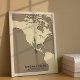 Upptäck den stora migrationen av Sandhill Crane (Antigone canadensis), som flyger 6 000 miles (9 700 km) mellan arktiska uppfödningsområden och vintringsställen i Mexiko. Den här bra konsten karta fångar upp sina koniska flockar i en kollektiv design.