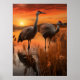 Snygg Sandhill Cranes som pockar i marschen vid soluppgången. En så vacker bit av dessa vackra fåglar. Tillgänglig i många storlekar och även som en omedelbar nedladdning.