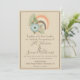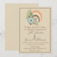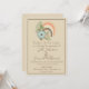 De perfekta bröllopsinbjudningarna för ett sandigt och blåsigt strandbröllop, denna inbjudan har en sandfärgad bakgrund med ett dekorativt snigelskal högst upp i mitten.