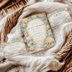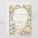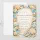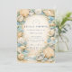 En förfinad kustbröllopsfirande design med en elegant oval krans av snigelskal, ostronskal, sjöstjärna och mjuka havsglasaccents. Neutrala sandiga toner smälter samman med dämpade havsblå och ömt gräs för att skapa en lugn kustaestetik. Den luftiga pergamentbakgrunden förstärker de naturliga texturerna samtidigt som den bibehåller en graciös, förhöjd look. Perfekt för en strandinspirerad fest med tidlös kustcharm.