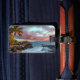Härlig tropisk hawaiansk stilö med den mjuka sandiga stranden och frodiga handflatan med en anmärkningsvärd solnedgång! Himmlen och molnen glöder i briljant toner av rosor, orangen och blått som soluppsättningarna på horisonten. Det foamy tropiska havsvatten tvättar över den sandiga stranden, som omges av eroderad beachrock för kor svarten. Ta inte din nästa semester utan detta tropiska hawaianska paradisbagage hänger lös märkren! Gör det personligt med förutsatt att snabba påfyllningsmallar!