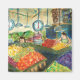 Två tillverkare staplar omsorgsfullt och ordnar färgen frukt och grönsaker i sin stallar. Två skalor hänger i harmoni med figurer. Pike Ställe Market ligger i Seattle, WA. Konturmålning som återges i akryl och pastel på papper. Anpassa den här produkten med egen text och bilder med hjälp av knappen "Anpassa den"!