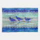 Sjöfartens tematiska kustdekoration av tre marinblå sandpipersongamla viltlevande träslag. Fågeldesign för kustlevande eller strandnära djur. Perfekt dekorationer för en strandstuga eller ett strandhus. I mitten av marin blå grafik över vinkara havet.