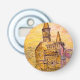 visar ett barn med boachball och ett jättelikt sandslott från en vattenfärg