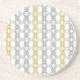 En elegant mönster med geometriska former i silver och guld, som är sammanlänkade med en rad linjära, snöre-strömmare.