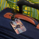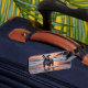 Sandy American Stafford Hund på Beach Sunset Bagagebricka