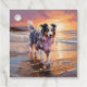Sandy Australian shepherd Hund på Beach Sunset Gåvor Etiketter