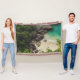 Sandy Beach Cove med Grönt Träd, Sten och oceanen Filt