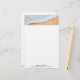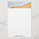Papper pappra med ett foto av en guldbrun sandstrand med vit skummande surfa.