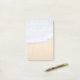 Fäster anteckningar med ett foto av en guldbrun sandstrand med vit skummande surfa. Halvgenomskinligt lagrar placerat överst till ge ett blekt utseende.