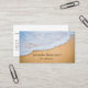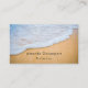 Affärskort med ett foto av en guldbrun sandstrand med vit skummande surfa.