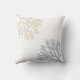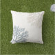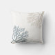 Kusten stil i dekorativ kudde har två korallsilhuetter i havet, en i kustblå färg och en annan i färg. På baksidan finns två havskorallsilhuetter, en ljusskugga av blått och den andra en brant färg.