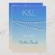 Sandy strandfärgsfärg stil konstnärlig inbjudan. En vacker gradient i blåaktiga nyanser och sandig färg vid grund . En sträng ljus gör det mer spännande. Inbjudan per lumirala. Anpassa båda sidor innan du skickar beställningen. Du kan kontakta designern i fodral om du behöver hjälp .argeleb2003@yahoo.com