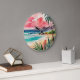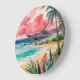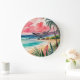En fredlig tropisk strand där guldsand möter rullande turkos vinkarare. Lush handflatan träd går under en drömmande rosa- och tealsolnedgång. Perfekten rymmer för dem som kärlek vid stranden och vid havsabborre.