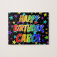 Den här livliga och roligt pusselpusslet med födelsedag visar budskapet "GRATTIS PÅ FÖDELSEDAGEN, SÅNG" med tecken som har ett färgstarkt regnbågsspektrum som inspirerar gradienten mönster, förutom ett spännande fält av stjärnornas bakgrund mönster. Ett så pass dynamiskt pussel kan vara ett roligt sätt att skicka ett hälsning-födelsedagsmeddelande till någon som heter Sång. [~Z0000468]