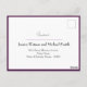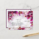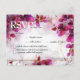 Svarskortet i vykortstil, en förtjusande tillägg till "Fuchsia Enchantment: Watercolor Wedding Suite", visar en pittoresk framsida dekorerad med den fängslande bakgrunden av fuchsia-blommor och murgröna. Den omsorgsfullt utformade designen tillhandahåller utrymmen för gästerna att infoga sina namn och svara med antingen acceptans eller avböjande. Dessutom presenteras tre måltidsalternativ, vilket gör det möjligt för gästerna att ange sina kulinariska preferenser. En omtänksam detalj är ett särskilt utrymme där gästerna kan begära en låt till DJ:n, vilket lägger till en personlig och musikalisk dimension till firandet.