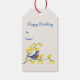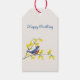 Sångblå och röd fågel på gren Gula blommor Presentetikett