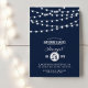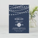Chic modern bröllop-sangeetinbjudan med enkel elegant-glödande sträng ljus som hänger ovanpå och en klassisk blandning av modernt och kalligrafiskt skript typsnitt. En enkel och snyggt, perfekt till sommaren! Klicka på knappen CUSTOMIZE IT för att anpassa typsnitt, flytta texten och skapa din egen unika inbjudan av typen one-of-a-natura-modell.