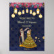 Sangeet välkomnar anpassningsbarna som dansar indiskt par med marockanska lyktor, blommor på den mörk blått bakgrunden. Kan även användas för mottagning.
