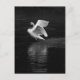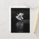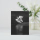 Ett svartvitt fotografi av en sångsvan som står på en grund fläck av en flod medan den sträcker sina vingar. Flodens ström och svanens spegling är en ljusare färg än flodens bakgrund, vilket skapar en illusion av en form på vattenytan. Fotografi Copyright ©Kimberly J Tilley.