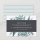 Designad för att samordna med vår vintage tropiska botaniska bröllopssamling från Sanibel, har detta strand-chica ecru bröllopsfirande inneslutningskort era firandedetaljer utskrivna på ett band av kolgrått med vintage stil gröna palmblad som tittar ut.