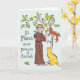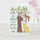 Lantlig, färgrik bild av Sankt Franciskus av Assisi, skyddspatron för djur och miljö, som skyddar en kärleksfull katt. Skicka hans välsignelse till alla katter som behöver skydd, samt i medlidande med en avliden katt.