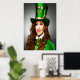 Sankt Patrick Day-brunt hår i dam | AI Art Poster