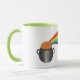 Keramiska mugg har en originalbild av en kruka av guld i Saint patrick's day i slutet av regnbågen och en skarp grönt schamprock. Underbar för St. Paddy's Day! Den här illustrationen på St. Patrick's Day finns också på andra produkter. Ser du inte vad du är tittar för? Kontakta Rebecca för att få något designat bara för dig.