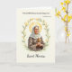 Denna hjärtliga design hedrar S:t Monica, den älskade skyddshelgonet för mödrar, hustrur och de som ber för sina nära och kära. Hennes ömma porträtt är inramat av mjuka blommor och en strålande gyllene gloria, och hon håller i ett träkors som speglar hennes djupa och trogna hängivenhet. En skriftsegensformulering från 4 Mos 6:24 – ”Herren välsigne dig och bevare dig” – tillför ett budskap om tröst och frid. Hennes minnesdag firas den 27 augusti, men detta kort kan skickas när som helst under året för att inspirera till bön, hopp och uppmuntran i tron.