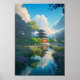 Mitt i den lush greenery som omger den stilla floden står ett rött trätempel som avger en aura av lugn och lugn. Det japanska templets tak i vinden glänser i solljuset, dess reflektion skakar på det stilla vatten nedan. Den lugna omgivningen och det subtila rostandet av löv erbjuder en välbehövlig respit från det kaos som råder utanför världen, skapar den perfekten ställe för eftertanke och eftertanke.