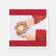 Ett foto av Santa's händer som har en kopp av hett choklad med en kaka.
