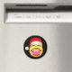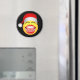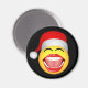 Jultomten Ansikte © Sunny Mars Design. Roligt runt julkylfrys eller kylmagnet med ett lustigt skratt ansikte på sig en julhatt.