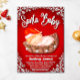Baby kommer till stan i vinter och firar babyduschen med denna charmerande unika inbjudan. För att fånga den glatt tiden på året, låg en söt baby som sov med Jultomten som digitalt ritades med komplimang snöflingor, titeldesign och röd bakgrund