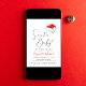 Ett sött, minimalt julpars baby-sprinkelinbjudan med "Santa Baby" i ett elegant med en hjärtsvasch, en vattenfärgsillustration av Jultomten Skålhatt och en inbjudan till en trevlig liten baby sprinkle. Anpassa namn i mor och far i ett rödskript i snyggten och lägg till duschdetaljer i enkel modern typografi.
