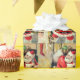 Denna är en vintageillustration av kommande jultomten besegrar lampglaset med presenter.