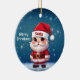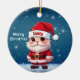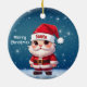 Santa! Celebrate the holiday season with this festive blue round ceramic ornament featuring an endearing woodland forest animal cartoon graphic of a cute baby reindeer wearing a Santa hat, and Merry Christmas written in white. Perfect deer with antlers for decorating your tree or as a thoughtful gift, this whimsical doe decor makes a cherished keepsake for years to come. Customize by changing the text, the font, the font color, or remove the text. You can even transfer this design onto other products. Enjoy this design your way! Check out ForestBabies Xmas Deer Collection for matching decorations. 🎄🩌 Dimensions: Diameter: 2.87". Thickness: 0.156". Weight: 1.4 oz. Made of white porcelain. Full-color, full-bleed printing. Printing on both sides. Thread does not come attached/tied.