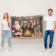 This cozy holiday design captures a heartwarming Christmas Eve moment, featuring a cheerful Santa Claus standing beside a glowing fireplace adorned with colorful stockings. Each stocking showcases charming patchwork patterns, festive motifs, and soft textures that evoke nostalgia and warmth. Surrounded by pine garlands, flickering candles, and carefully wrapped gifts, the scene radiates timeless tradition and seasonal joy. The rustic stone hearth and wood accents add a cottagecore touch, while the soft lighting creates a magical, storybook atmosphere. Perfect for holiday-themed décor or winter-inspired collections, this piece brings the spirit of Christmas to life with inviting detail and classic charm. AI generated artwork.