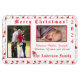 Santa Cap Patterned-juldesignen har den festliga mönstrade designen av jultomteffar, polkagrisar. snöflingor och lager som bakgrund till din information, som visas med ljusröd text. De foton du anger visas som de visas.