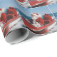 Santa Claus joyfully steers a red speedboat across the ocean, with a large sack of gifts beside him, under a bright blue sky that adds to the sense of adventure and fun