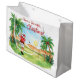 Celebrate a Florida Christmas on the green! This playful watercolor design features Santa mid-golf swing on a tropical course surrounded by palm trees, and sunshine. Perfect for golf lovers who prefer fairways over snowdrifts.