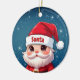 Santa Claus! Celebrate the holiday season with this festive round ceramic red ornament featuring an endearing cartoon graphic wearing a cute Santa hat, and Merry Christmas written in white. Perfect for decorating your tree or as a thoughtful gift, this whimsical decor makes a cherished keepsake for years to come. Customize by changing the text, the font, the font color, or remove the text. You can even transfer this design onto other products. Enjoy this design your way! 🎅🎄 Dimensions: Diameter: 2.87". Thickness: 0.156". Weight: 1.4 oz. Made of white porcelain. Full-color, full-bleed printing. Printing on both sides. Thread does not come attached/tied.