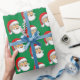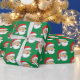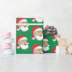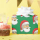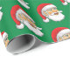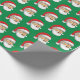 Santa's head on wrapping paper with a green background.