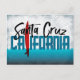 Santa Cruz Kaliforniens surfingdesign. En röd surfboard med blå och turkotisk text - typografi surfertema.