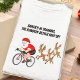 This festive Christmas tee-shirt showcases Santa Claus speeding down a snowy hill on a candy cane striped bike, with his cheerful reindeer racing close behind. It’s the perfect holiday design for cyclists, bike riders, and anyone who loves a fun and active Christmas season.