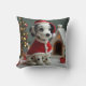 Dynen på en Dalmatisk docka klädd i en jultomtedräkt skapar en julatmosfär i lycklig i inomhusrymden.