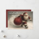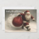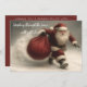 Celebrate the magic of Christmas with this playful card featuring Santa Claus dashing through a snowy landscape, red sack in tow and gifts in motion. The reverse side includes a heartfelt holiday message along with the sender’s name for a personal touch.