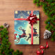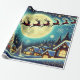 Tomten Levererar Presenter på Kväll-julets inslagningsPapper. Den här inslagna pappra finalen fångar julens magiska innersta väsen i Kväll med en levande, detaljerad utformning. I illustrationen märks Jultomten i hans ikonröda kostym, där han med glädje levererade presenter från sitt sligh, som dras av stora renar som suger upp genom en stjärnbar natt himmel. Nedan tillför en mysigt by som är täckt av snö med varmt upplysta hus en aning nostalgi och charm. Konstruktionen accentueras med dubbla stjärnor, en glödande fullt måne och en festlig färg palett med rött, grönt och guld. Perfekt för inslagning av gåvor av alla storlekar - detta högkvalitativa papper garanterar att presenter kommer att stå ut under Julgran och sprida glädje och glädje. Idealisk för dem som vill lägga till en liten, hjärtlig beröring till sitt helgdag firande!