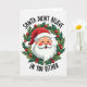 This cool card shows Santa Claus with a mischievous look, smiling with rosy cheeks and twinkling eyes, inside a wreath of green leaves and red berries. The words "SANTA DOESN'T BELIEVE IN YOU EITHER" are in big letters above and below him. The picture is in a circle shape, and Santa’s red hat and white beard stand out against the white background. The leaves and berries look shiny and the colors are bright red and deep green. This card is funny and different, meant for grown-ups who like a good laugh during the holidays. It’s perfect for spreading some festive cheer with a twist! 🎅🏼🎄🎁