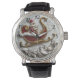 A charming depiction of Santa Claus joyfully riding in a beautifully crafted sleigh, surrounded by elegant swirls and decorative elements.