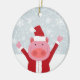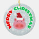 Illustration av en gris med tomtutrustning med God jul hälsning på baksidan